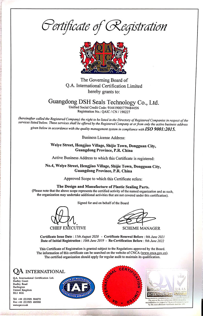 東晟密封 國家質(zhì)量保證:認證證書